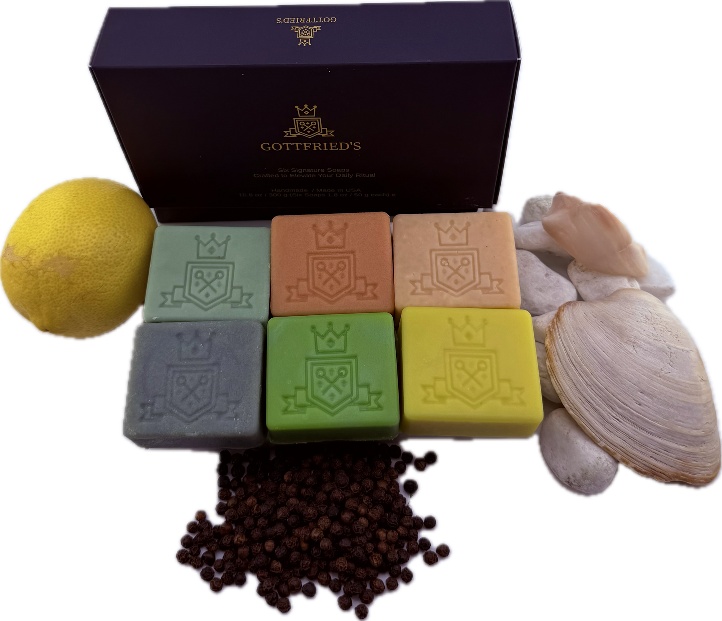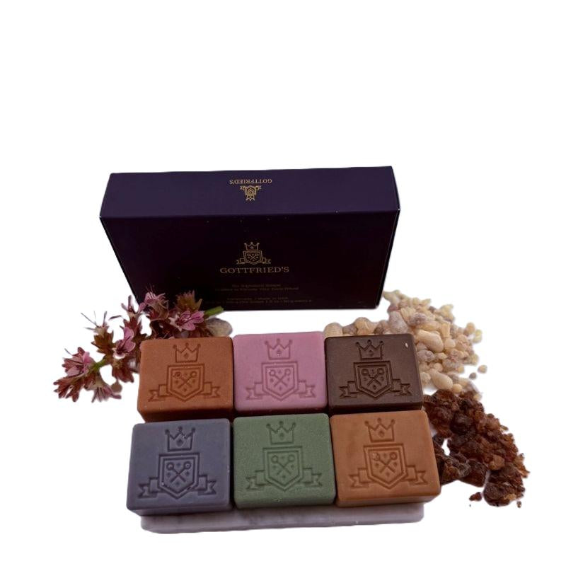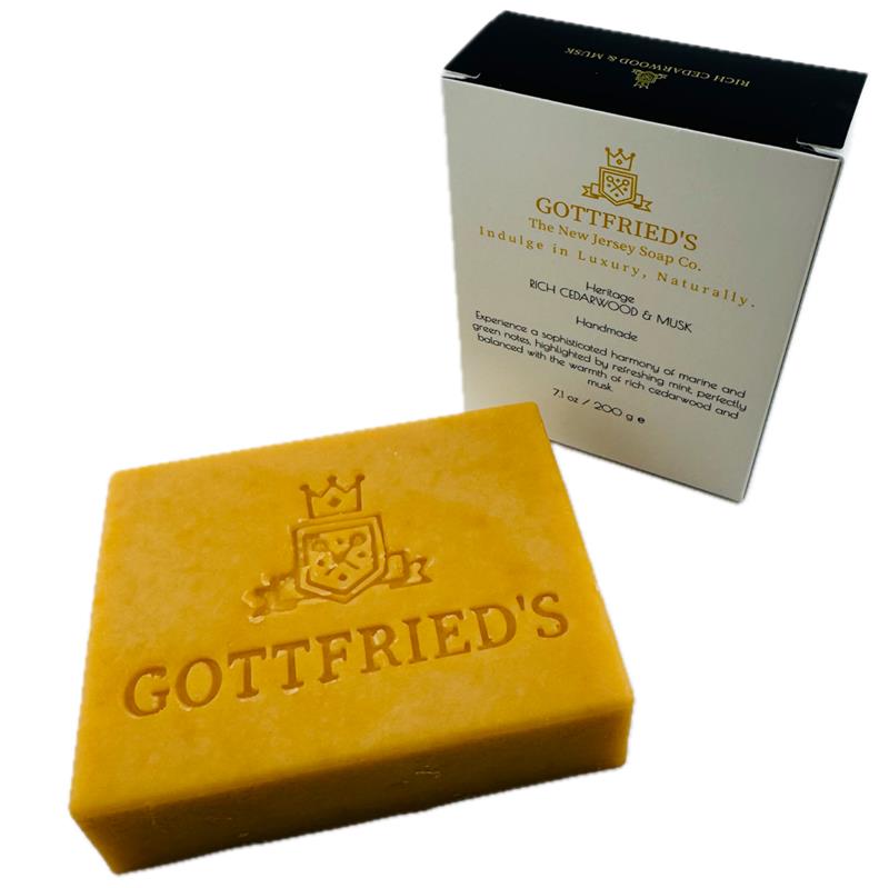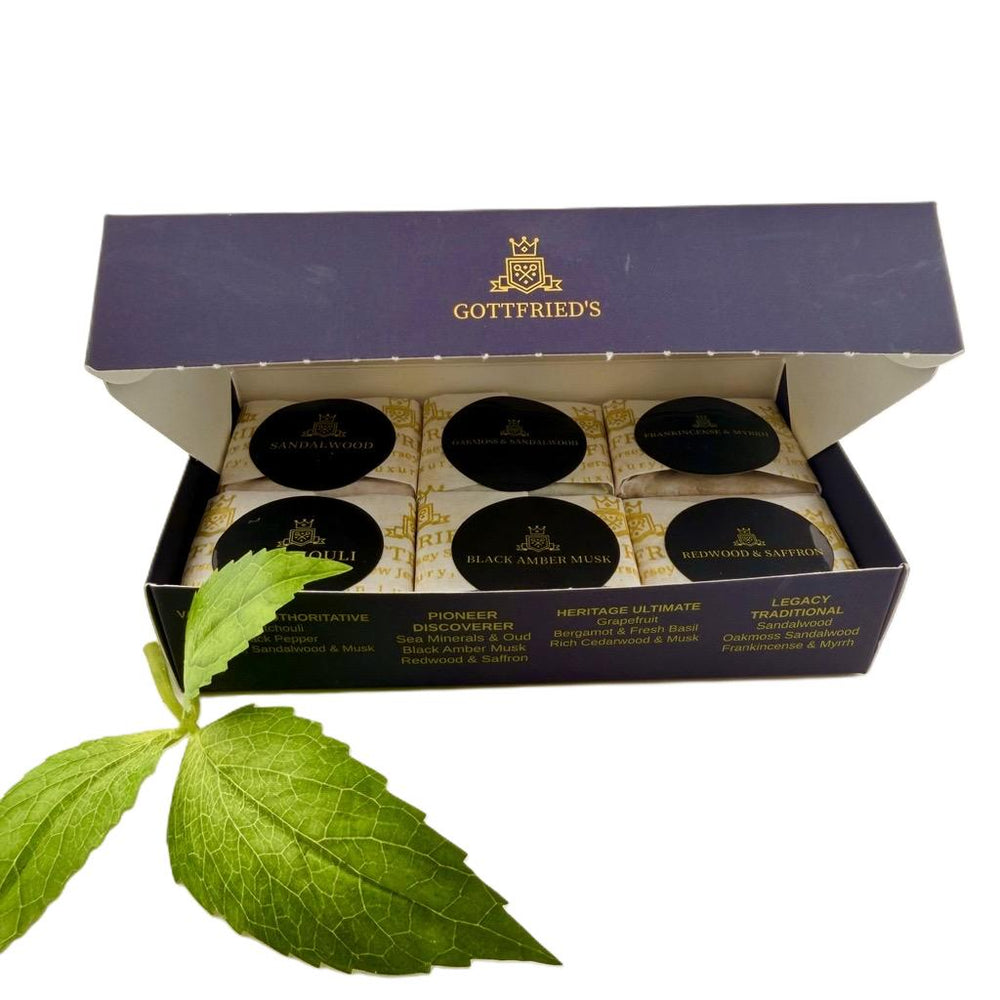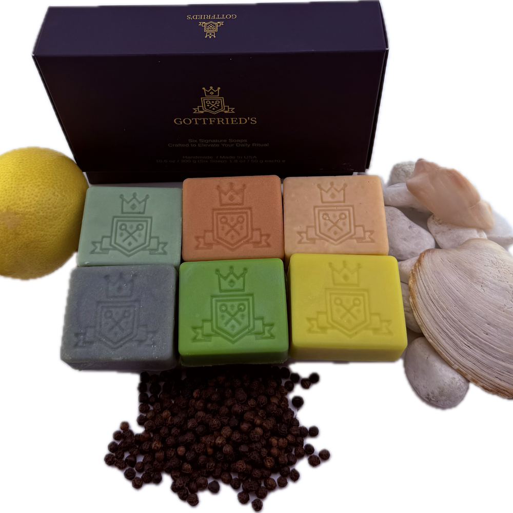 Discover the complete world of Gottfried’s luxury men’s soaps in one place. From timeless classics to bold, modern blends, our collection is crafted to elevate the everyday ritual of grooming into a refined experience. Each bar is crafted with food-grade oils, natural butters, and essential fragrances, delivering a rich lather, long-lasting performance, and a subtle, masculine scent.